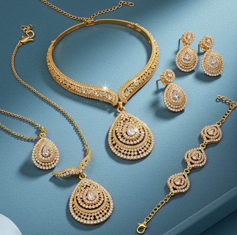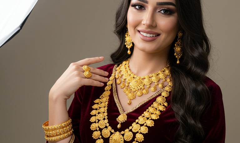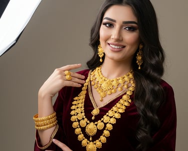 تستعرض إبداعاتنا الأنيقة أرقى مستويات الحرفية في الذهب والمجوهرات، وهي مصممة لرفع مستوى أسلوبك وجعل كل لحظة مميزة مع القطع الفاخرة التي تعكس ذوقك الفريد.